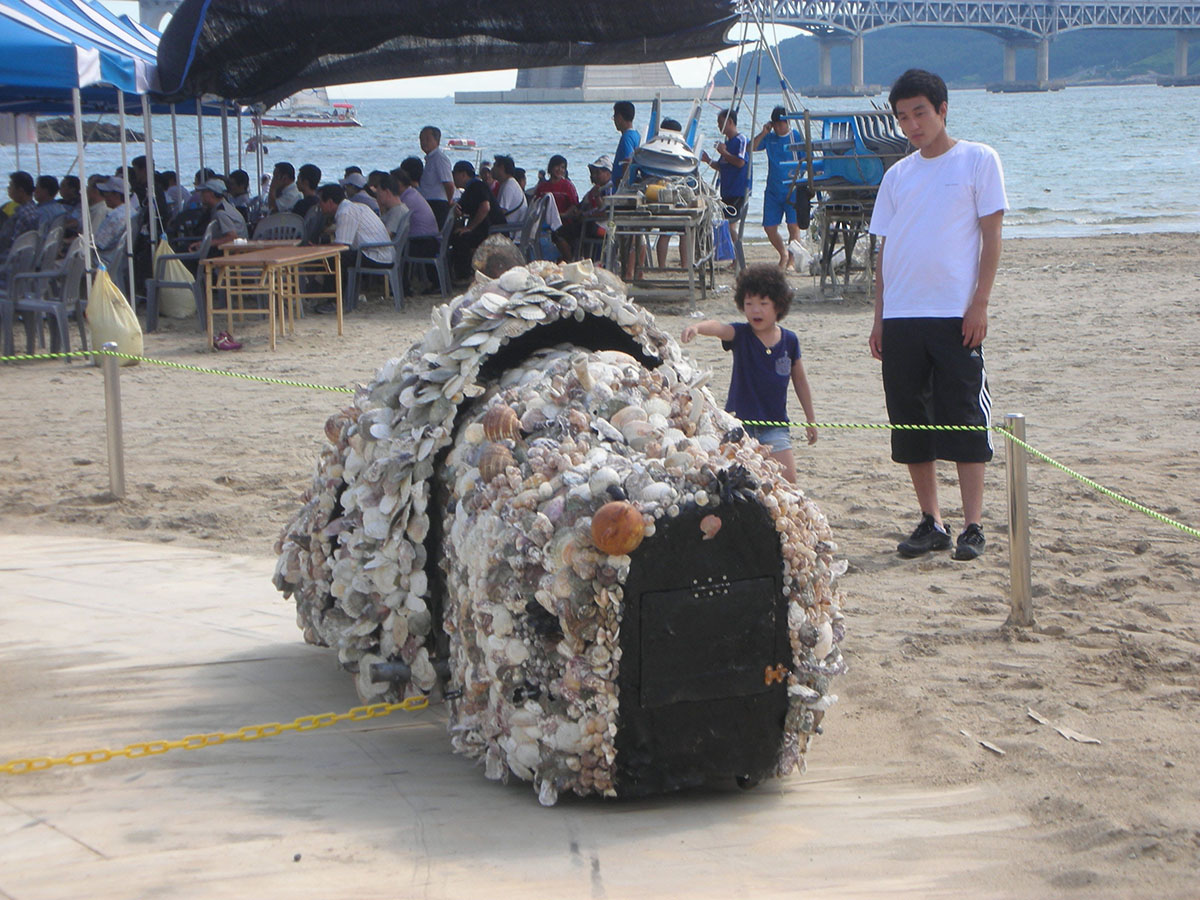2010 11.1 x 3.6 x 3.6 ft. (W:340 D:110 H:110 cm) Seashells, Marine debris, FRP, motor, lithium battery and etc.