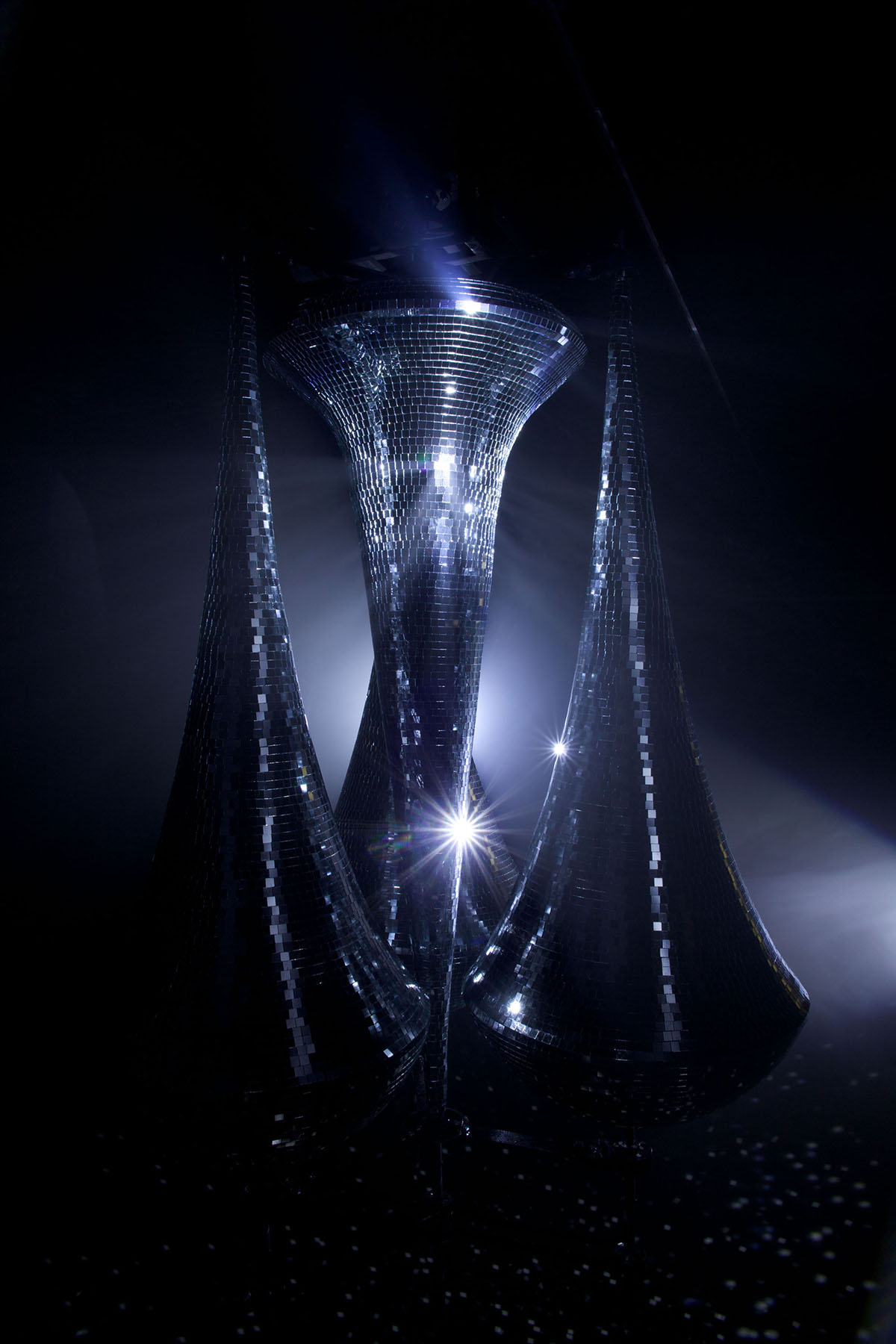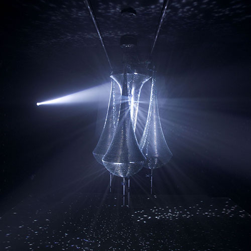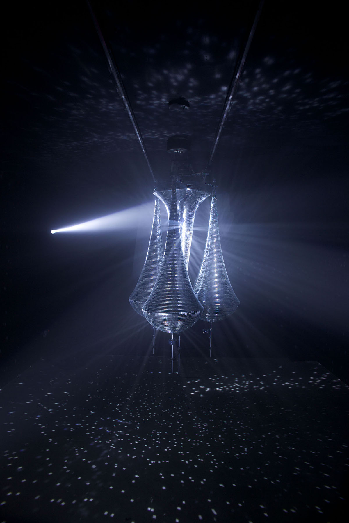mirror, motor, gear, pulley, belt, steel, LED light, haze machine and etc.