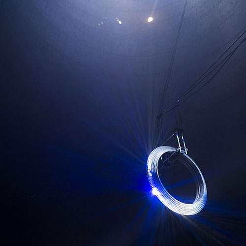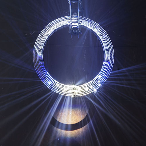 Hollow Moon 2017 24 x 10 x 30 in . ( W:60 D: 25 H: 76 cm) mirror, motor, aluminum, steel, pulley, belt, LED light and etc.