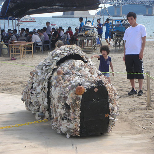 2010 11.1 x 3.6 x 3.6 ft. (W:340 D:110 H:110 cm) Seashells, Marine debris, FRP, motor, lithium battery and etc.