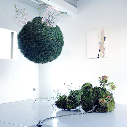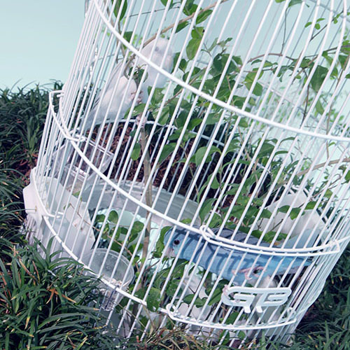 In response, I have created what I call an “ideal space” for birds within a cage—an environment that promises their happiness, or at least the illusion of it. By doing so, we declare ourselves free from guilt. “Goodbye, guilt. We are one step closer to utopia.”
