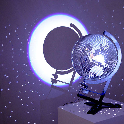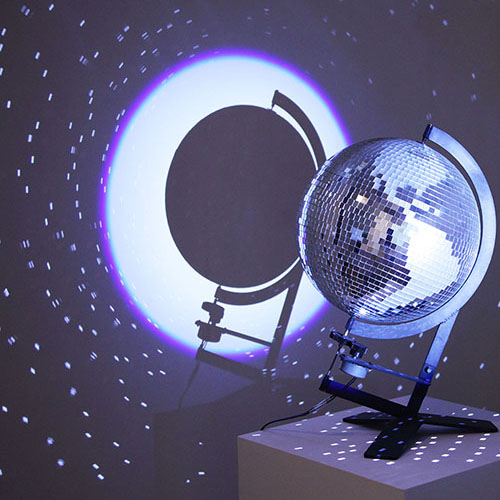 We are the world 2015 18 x 18 x 24 in. (W: 152 D: 152 H: 122 cm ) mirror, motor, steel, gear and etc.